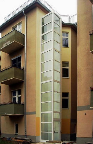 SENKRECHTLIFT an einem Mehrfamilienhaus